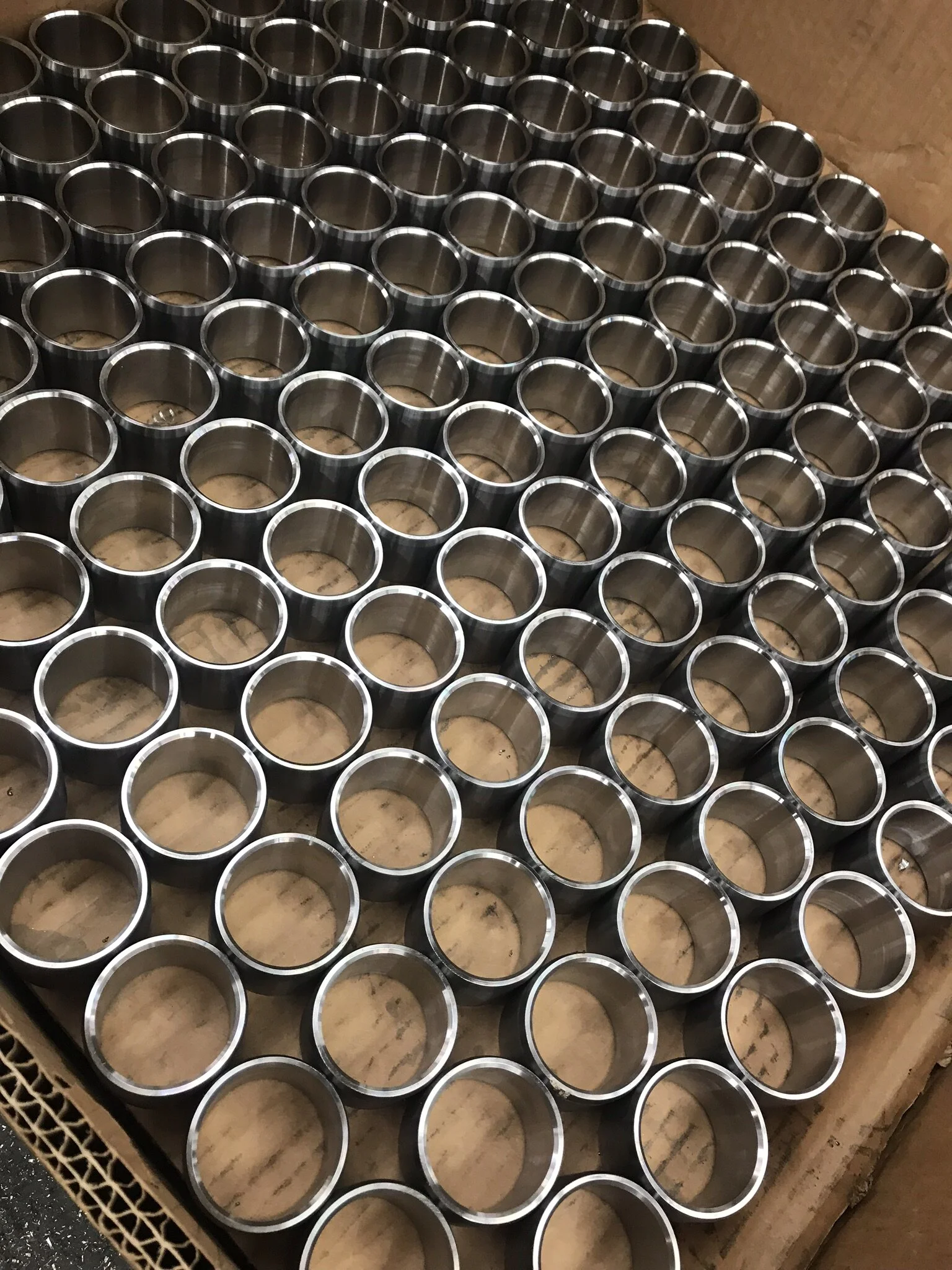 Ripley Machine can also manufacture all kinds of bushings and adapters for a range of applications. Bushings are often manufactured from steel, and occasionally from stainless steel, and our adapters are made from steel, stainless steel, or aluminum. We use CNC lathes or Swiss machines, as well as working with outside resources for heat treating or plating to help get the parts hardened or plated as necessary. Additionally, we use grinding to grind the bushings with very tight tolerances. We grind the OD of bushings using centerless grinding, and the ID with internal grinding. View the gallery below to see some of the many bushings and adapters we’ve manufactured.